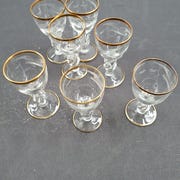 8 mågeglas med guldkant og mågemotiv 8 cm høje