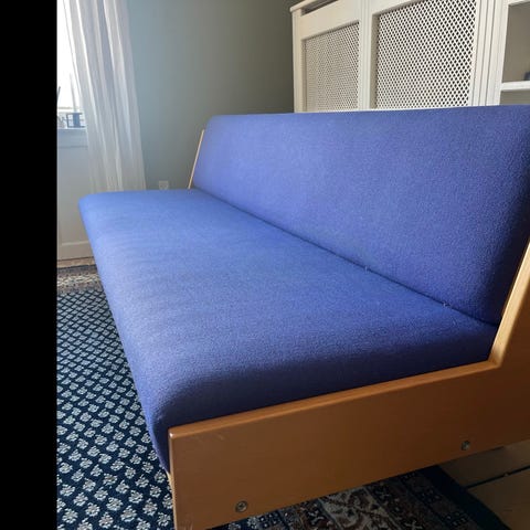 Sovesofa, brugt. Er stadig pæn i betrækket, med lidt falmet farve.
