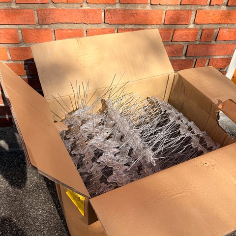 Bird Spikes fuglepigge i plast, samlet længde 4 meter, farve sort. Piggene er monteret på lange plastskinner, der kan tilpasses og fastgøres på fx hegn, rækværk, vindueskarme eller tagkanter for at forhindre fugle i at lande. Velegnet til udendørs brug på forskellige typer overflader, hvor man ønsker at begrænse fugles ophold.