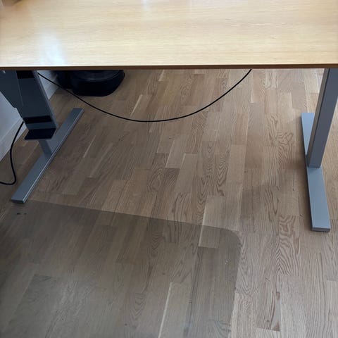 Fint hævesænke skrivebord i lyst træ incl. arkiv skab med 4 skuffer på hjul.