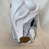 Schollert vase i keramik med riflet struktur. Vasen har en lys, glasureret overflade med nuancer i beige og brun. Formen er let konisk med smallere fod og bredere åbning. Egnet til dekoration og til opbevaring af blomster eller grene i hjemmet.