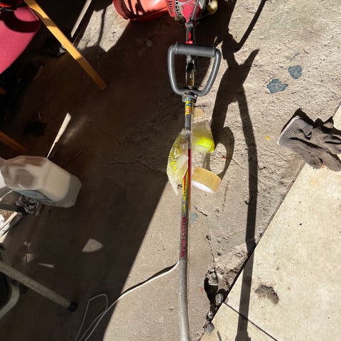 Græstrimmer benzindrevet. Håndholdt model med langt skaft og bæresele. Egnet til trimning af græs og ukrudt langs kanter, omkring bede og andre steder, hvor en almindelig plæneklipper ikke kan komme til. Velegnet til brug i have og omkring hus og indkørsel.
