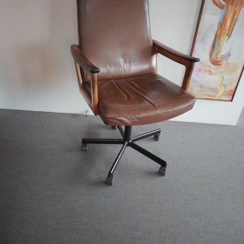 Fed retro Labofa kontorstol. Dansk stol af Jacob Jensen. I brunlig uld. Har slid på venstre armlæn.