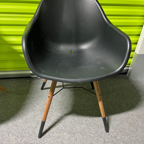 Fin stol med armlæn til 30 kroner. Benene er i massiv træ.