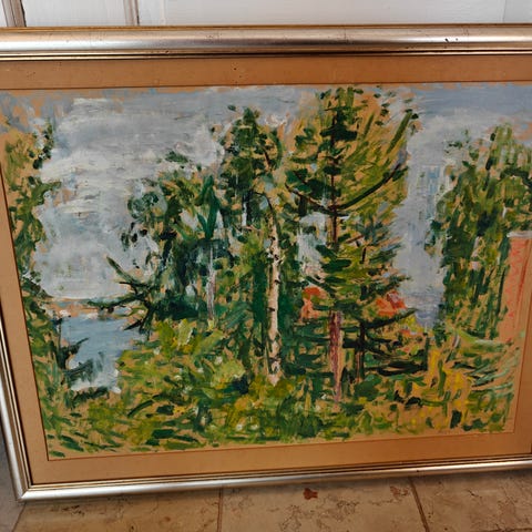Lærred måler 75,5cm. x 55,5cm.