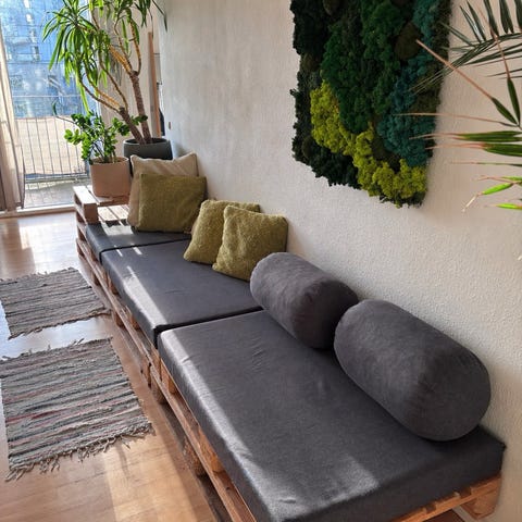 Har været brugt som sofa/flyder i forbindelse med hjemmebiograf, men kan kombineres på mange forskellige måder.