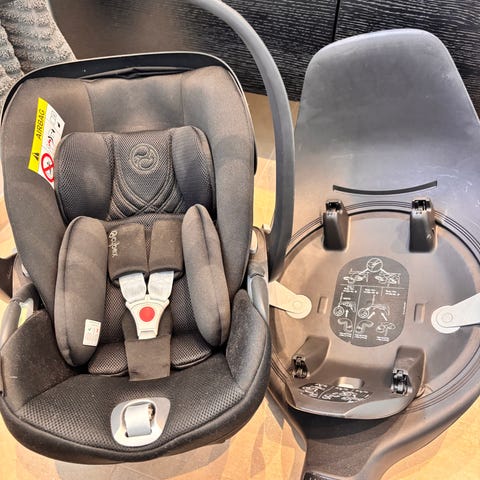 Sælger dette cybex babyautosæde med base og adapter til barnevogn eller klapvogn.