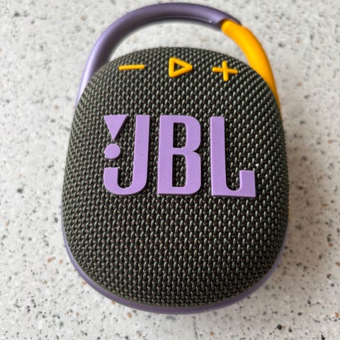 Cool, bærbar og vandtæt. Den friske og iøjnefaldende JBL Clip 4 leverer 10 timers overraskende fyldig JBL Original Pro-lyd i en kompakt indpakning. Den unikke ovale form ligger perfekt i hånden. Helt pakket ind i farverigt stof med udtryksfulde detaljer inspireret af tidens street-fashion, som let matcher din stil. Den fuldt integrerede karabinhage er nem at hægte på tasker, bælter eller spænder, så du kan tage dine yndlingssange med overalt. Vandtæt og støvtæt med op til 10 timers spilletid. Den er hårdfør nok til at følge dig overalt.