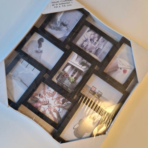 Ramme, Collage ramme med 4 i 1 købt på BGA. 1 stk 10x10, 2 stk 15x10, 1 stk 18x13. Kan både stå og hænge. Kan sendes.
