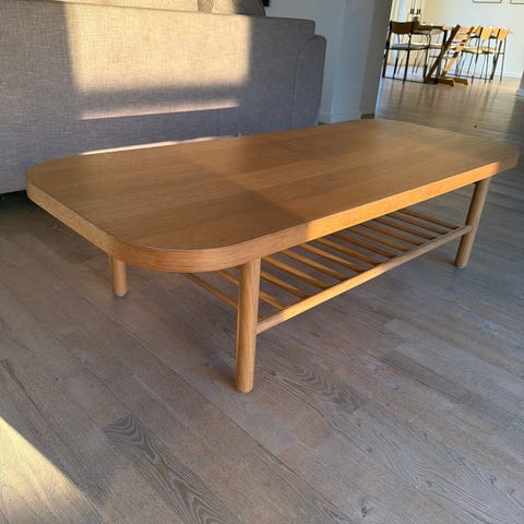 Superfint og eftertragtet Listerby sofabord fra IKEA med elegant opbevaringshylde under bordpladen.