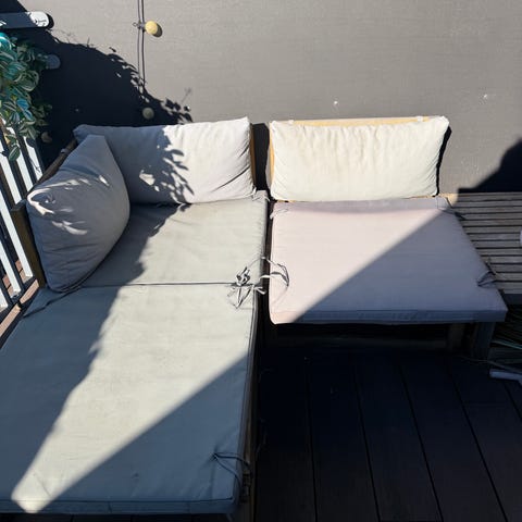 IKEA Havsten Havelænestol. Jeg har brugt den som loungestol indenfor mest af tiden, derfor er den i rigtig god stand!