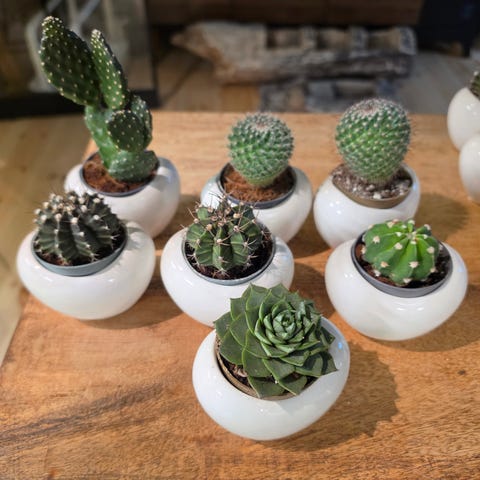 Kaktus og grøn stueplante i urtepotter
