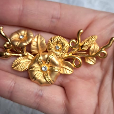 Den billige pris pga brochen er slidt i den 24 karat forgyldning og der medfølger ikke original æske