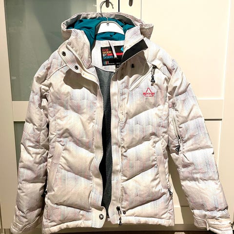Skijakke, SOS dame, str. Xl/42, Brystmål 112 cm længde 70 cm skøn Skijakke i strech materiale med hætte med pelskant der kan aftages. Lommer med lynlåse og en god foring. Nypris 3199 kr