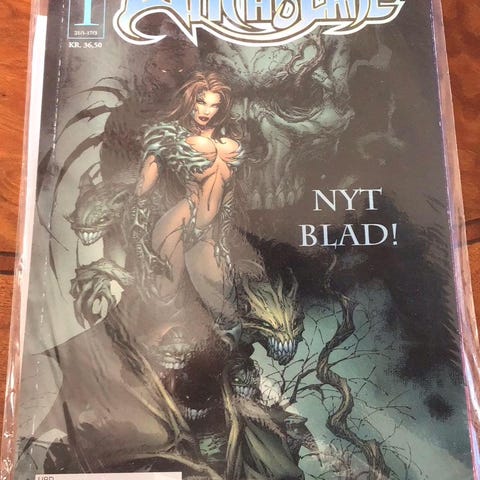 Witchblade nr. 18 tegneseriehæfte med Tomb Raider crossover-historie. Forsiden viser Witchblade-figuren sammen med Tomb Raider-tema og teksten "Darkness".