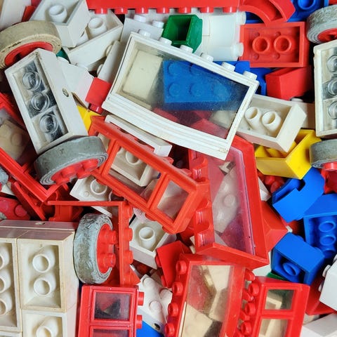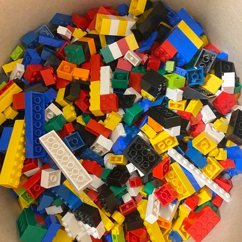 LEGO klodser i blandede farver og størrelser. 3 kasser. Fra 70'erne. Afhentes i Fredensborg.