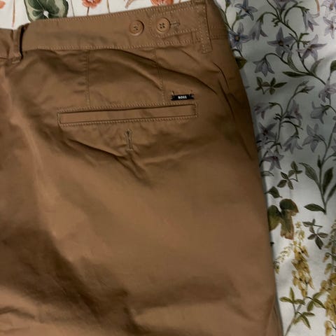 Sunwill Modern chinos til herre i grå. Bukserne er i størrelse 56 med taljemål ca. 102 cm og benlængde (inseam) ca. 86 cm ifølge mærket. Modellen er nr. 13180 og er fremstillet i en bomuldsblanding med elastan, som giver lidt stræk. Klassisk chinos-snit med lommer og mønstret linning indvendigt. Velegnet som hverdags- eller arbejdsbukser samt til mere formelle lejligheder afhængigt af styling.