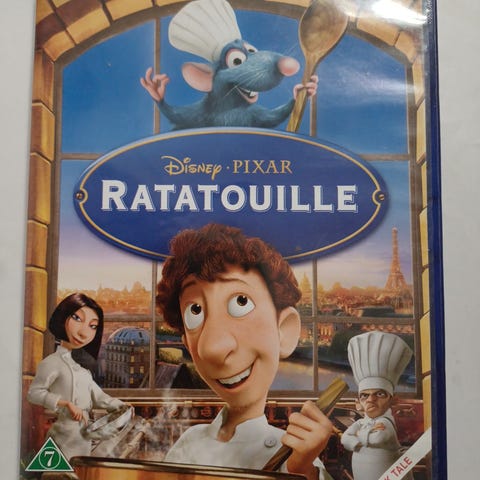 Disney Pixar Ratatouille dvd. Animeret familiefilm om den madglade rotte Remy og kokken Linguini. Udgivelse på dvd med dansk titel og del af Disney Pixar klassikere-serien. Velegnet til afspilning på dvd-afspillere, der understøtter standard dvd-format.