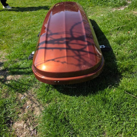 1950 x 738 x 360 mm, 390 l, med åbning i begge sider og centrallås, vægt 13 kg, maks. lastkapacitet 75 kg. Solidt og aerodynamisk design - helårsbeskyttet. Inklusive tværstænger.