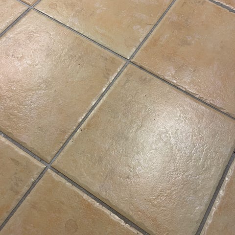 Fliser i beige nuance med natursten-lignende overfladestruktur. Kvadratiske fliser på 45x45cm med let nuanceret farvespil