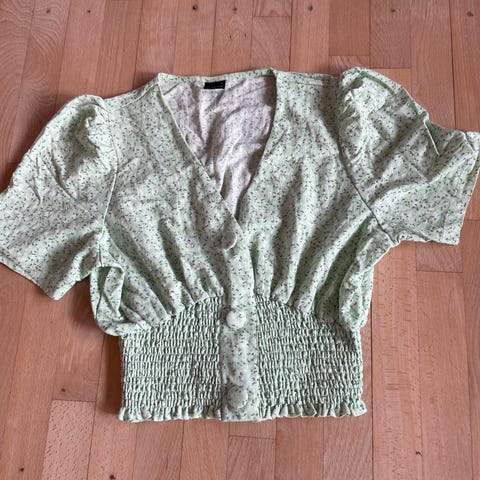 Bershka grøn/hvid kortærmet flæsetop, blomstermønster, størrelse M, fejlfri