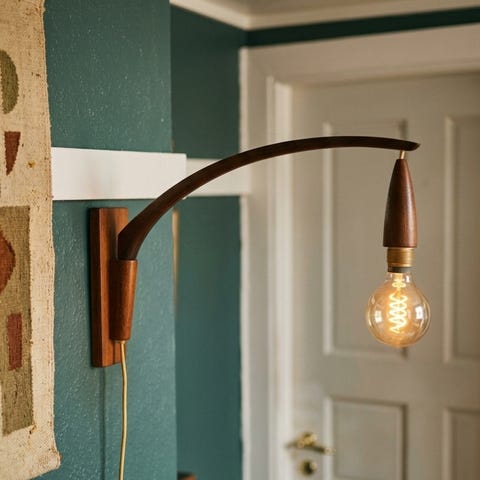 Teak teaktræ teakwood vintage midcentury skænk kommode retro lampe lamp light bauhaus