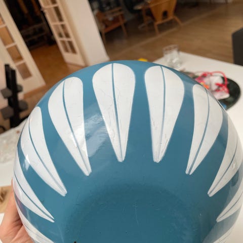 Holmegaard, Quadro Art glass. Stor Gråblå skål med firkantet top og kugleformet bund.