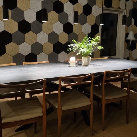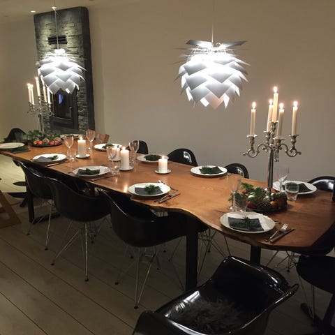 Flot massiv egetræsplanke spisebord med sort epoxy og sorte stålben. Plankerne er slibet og afrundet hjørner. Lakeret så de kan tåle lidt af hvert.