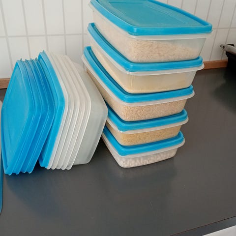 Disse er med flotte hvide / gennemsigtige låg med snaplås funktion. Samt har en meget bedre størrelse mht. madlavning / opbevaring.