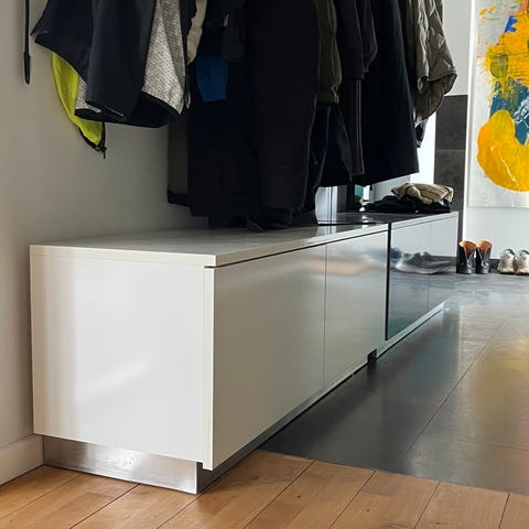 Hvid skænk i enkelt, moderne design.