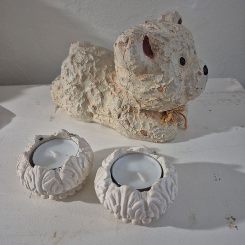 Hjemmestøbte katte af beton. Kan evt bruges til stearinlys som pynt ved bordet.