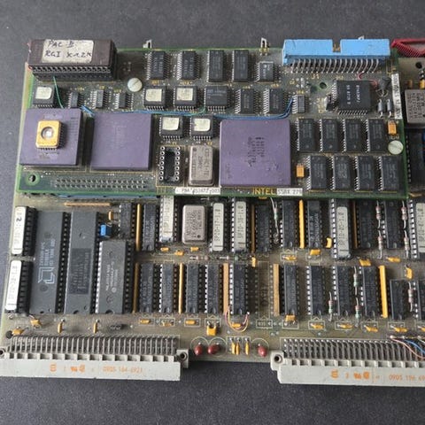 486 33Mhz 8MB Ram. Der er netkort i og den har ISA sokler.