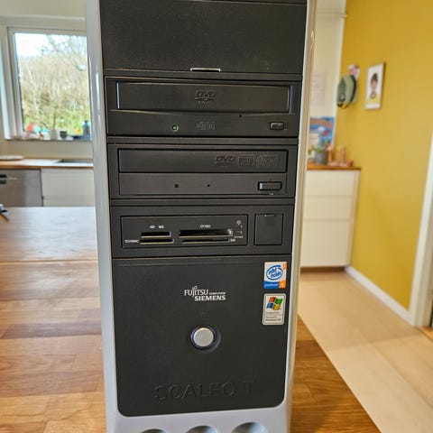 Uden harddisk. Men fungerer perfekt. Kan køre med en IDE harddisk, eller et CF kort med IDE->CF interface (kan medfølge for merpris).