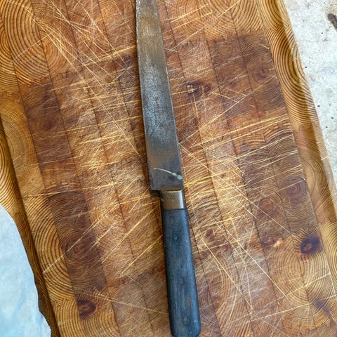 Virkeligt stor kokkekniv med fuldtang. Vintage.