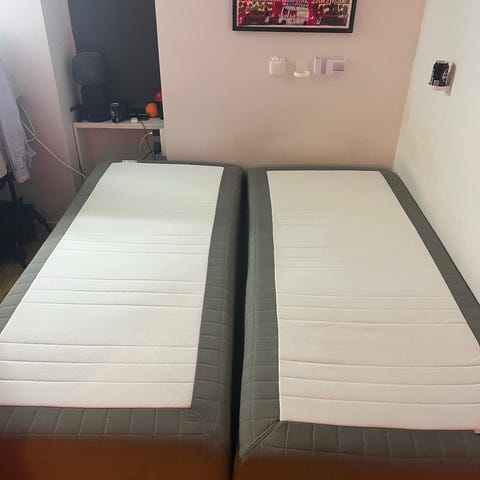 2 stk senge 90 x 200 inkl. topmadrasser ca.5 cm og 2 stk Jysk skab.