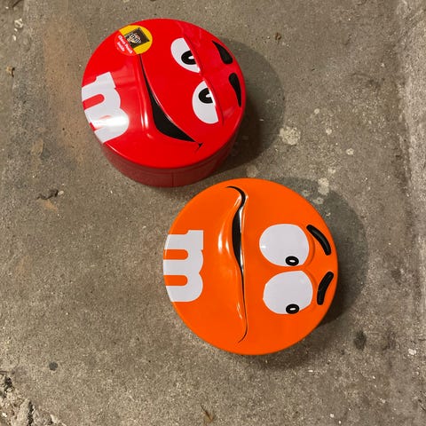 m&m's minis skål/fad. Oprindeligt har den været til byttepenge. Den har et lille nag på bunden, har prøvet at fange det på billede.