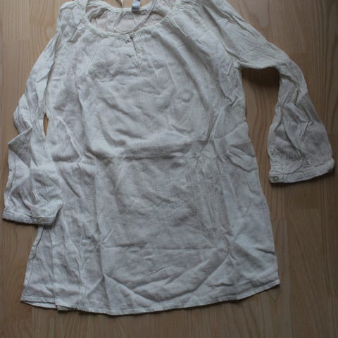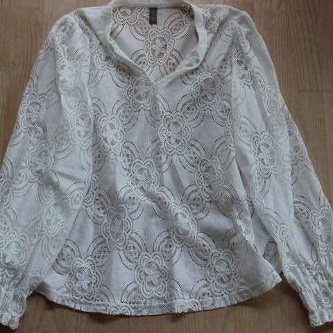 Sommerbluse, made in Italy, 20% bomuld og 80% viscose, Hals med blondekang, blondemønster forneden. Jeg kan godt sende varen.