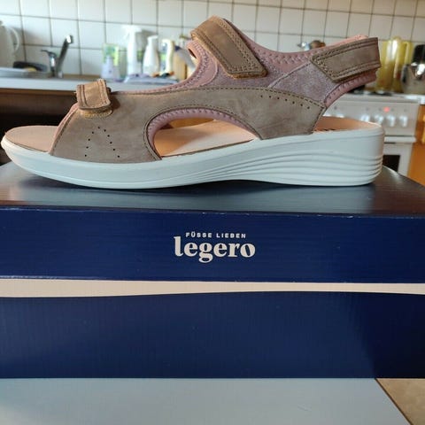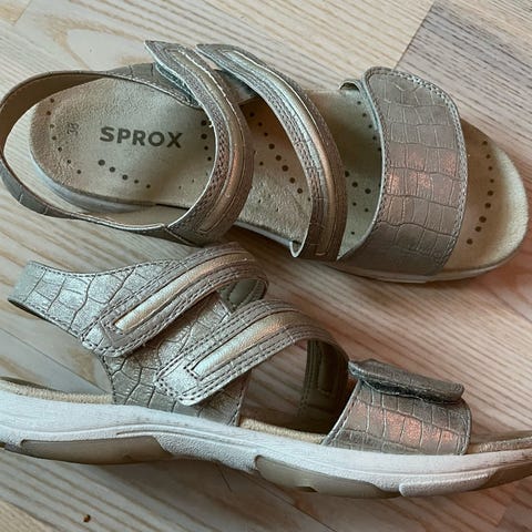 Lidt brugt .... mørke pletter inde i sandalerne, er fra tidligere påklæbede indlæg