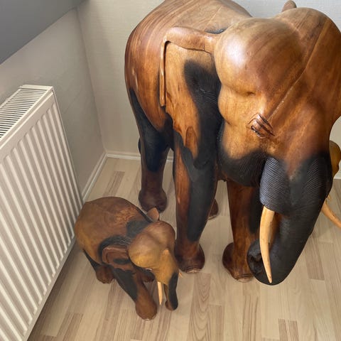 Elefant Elefanter Træskærer Træfigur Trækunst Figur Skulptur Skulptør Håndsnittet Elefant i træ