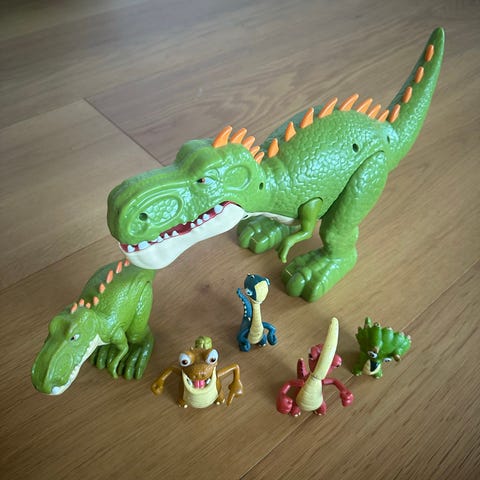 Dinosaur legetøjssæt opbevaringskuffert med figurer og tilbehør grøn plast