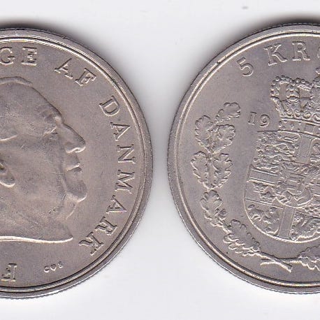 (611) DK 1+2+5+10+25 Øre + 1 Kr. alle 1942 tæt på uc kv.