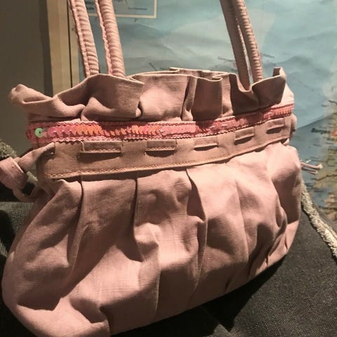 Designet er blødt og tekstureret med dekorative lag, som giver tasken et feminint udtryk.
