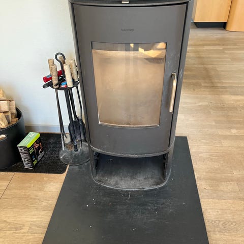 Jydepejsen Trend-Line brændeovn med en nominel effekt på 5 kW. Brændeovnen er beregnet til fyring med træ og har stort buet glas i lågen, som giver godt indkig til flammerne. Fronten og korpus er i grå metalfinish. På typeskiltet er angivet mindsteafstande til brændbart materiale: bag ovnen 200 mm og ved ovnens sider 400 mm. Brændeovnen leveres med tilhørende røgafgangsrør og en metalplade, der kan anvendes som gulvplade under ovnen, afhængigt af lokale krav og installation. Velegnet som varmekilde i stue eller opholdsrum, hvor der ønskes opvarmning med brændeovn efter gældende regler og installation af fagperson. Årgang 2006