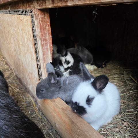 Begge forældre er store og tillidsfulde kaniner som søger kontakt. De er super gode som frikaniner, men er også velegnet til avl.