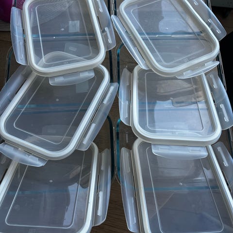10stk. madopbevaringsbokse i rektangulær form med blå låg. Beholderne er i plast og egner sig til opbevaring af tørvarer eller rester i køkkenet. Sættet består af flere bokse og tilhørende låg i samme størrelse og design, som kan stables for pladsbesparende opbevaring i skab eller skuffe.