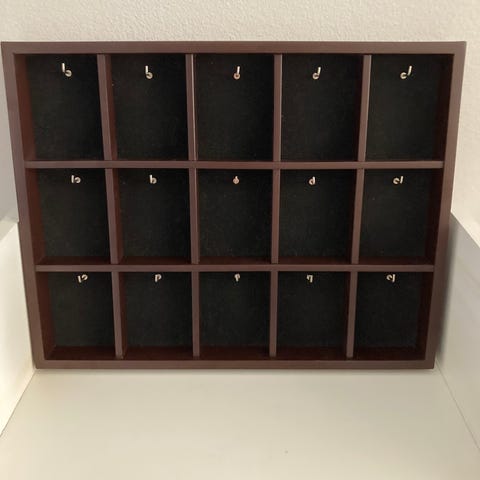 3 huse i forskellige størrelser til at hænge på væggen. Perfekt til børneværelset til f.eks smykkeskrin eller andre små ting.