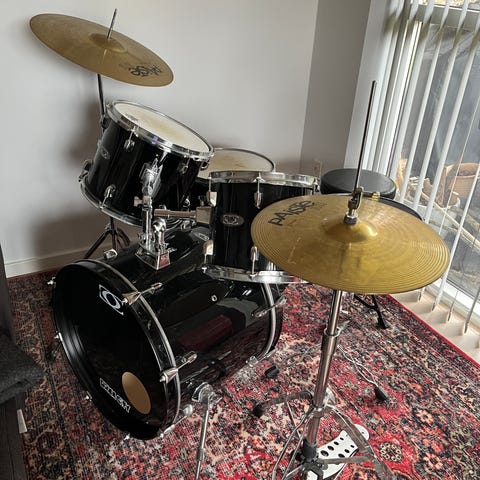 Sælger dette trommesæt, da jeg desværre ikke får det brugt længere. Det er købt fra ny og er kun brugt ganske lidt, så det fremstår i rigtig fin stand.