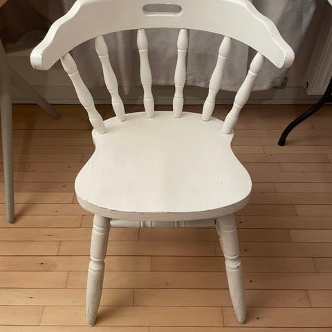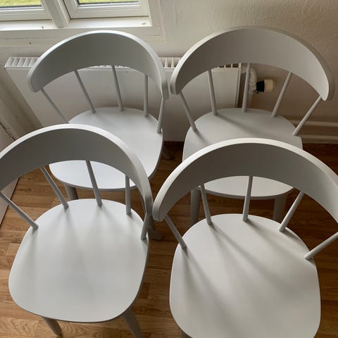 Sælger 4 fine spisebordsstole i massivt træ med klassisk vintage look.