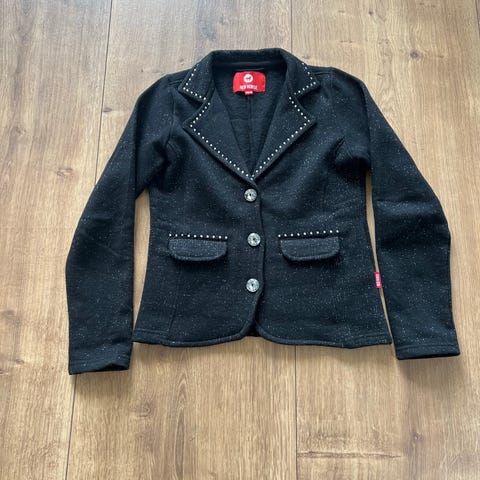 GPA Double Clear ridejakke i sort. Jakken har klassisk revers, brystlomme med GPA-logo og klaplommer foran. Lukkes med knapper og har knapdetaljer ved ærmerne. Egnet som ridejakke til stævner og træning.