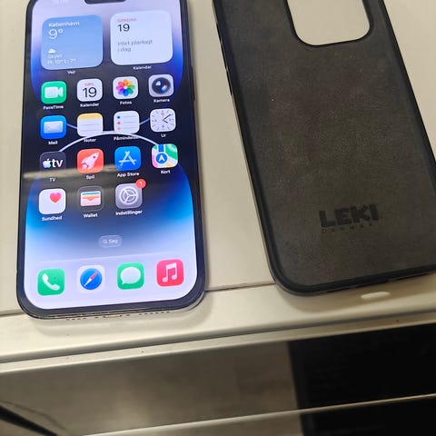Yderst velholdt iphone 14 max pro. Fungerer uden den mindste anmærkning. Sælges fordi jeg har opgraderet. Testet inden annoncering og alt virker upåklageligt. Original oplader, ledning og cover følger med. har lige været ti service . er renset og har fået nyt batteri.
